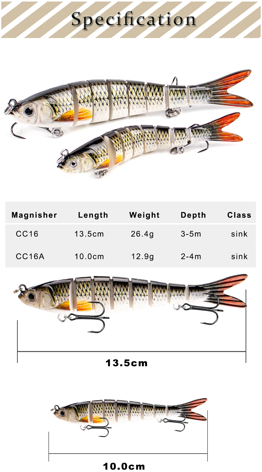 Magnisher 8-Segment Realistic Hard Fishing Lure 13.5cm/10cm Jointed Swimbait Lifelike Action Slow Sink Bait Fresh/Salt Water